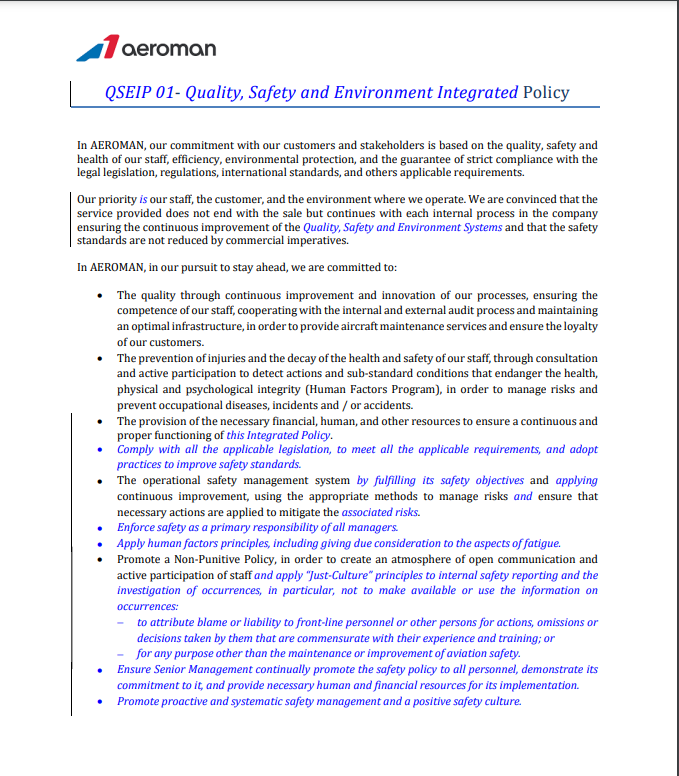 For over 37 years, safety has been our number one priority. Aeroman holds a wide number of international certifications including EASA and FAA. To guarantee these safety standards, all employees undergo hours of constant and rigorous training which allow them to develop the technical skills necessary to assure excellence in all services offered.